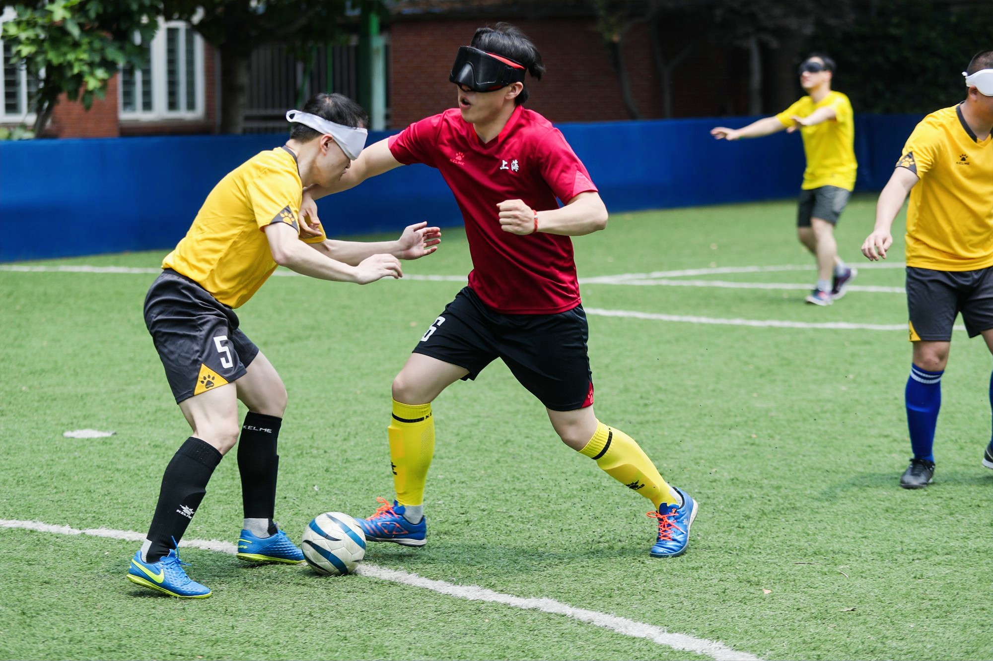 让视力正常的人与无视力人群的共同娱乐活动,如简易版盲人门球, 盲人板